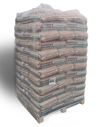 Wir bieten einen sauberen, wirtschaftlichen und umweltfreundlichen Brennstoff für das Heizen mit Pellets an. Die Pellets PELLETS HP+R sind von hoher und konstanter Qualität, dank der Trocknung bei niedriger Temperatur und der totalen Kontrolle über das Material Holz. Sie bestehen ausschließlich aus getrockneten Holzpartikeln, die anschließend ohne Leim oder Zusatzstoffe gepresst werden. Die Palette besteht aus 72 Säcken à 15 kg, d. h. 1080 kg.