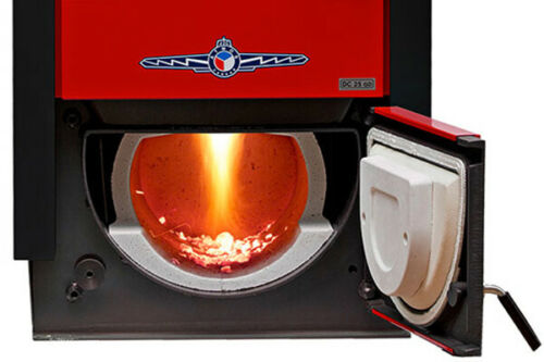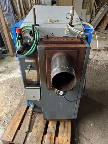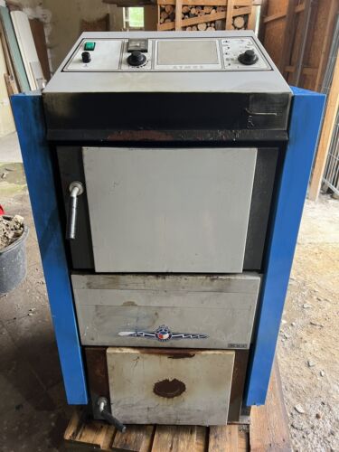 Hervorragender Holzofen mit Boiler, mit dem Sie Heizkörper versorgen, Ihren Boiler unterstützen oder einen großen Warmwasserspeicher heizen können. Es hat einen Glasherd (sichtbare Flamme).