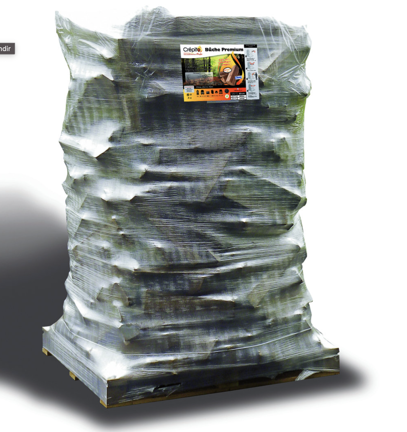 Das „+“ Produkt: Laut ADEME hat 1 Tonne verdichtetes Holz ungefähr denselben Heizwert wie 4 Ster herkömmliches Holz (≈ 2 Tonnen). Diese Holzscheite werden ohne Zusatz von Leim hergestellt und die Verpackungsfolie ist recycelbar.